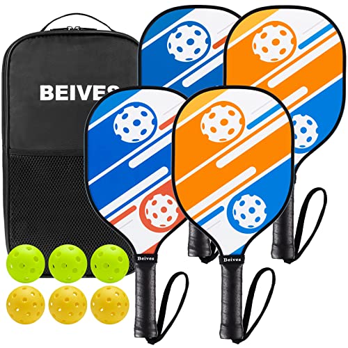 Beives Pickleball Paddles Pickleball Set 7-ply Basswood Wooden Pickleball Rackets Set of 4 with 6 Balls and 1 Carry Bag, Pickleball Equipment for Beginner to Intermediate with Extra Edge Guard