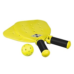 ALL IN ONE set includes the net, 2 pickleball starter paddles and 1 pickleball. EVA padded handle paddle design.