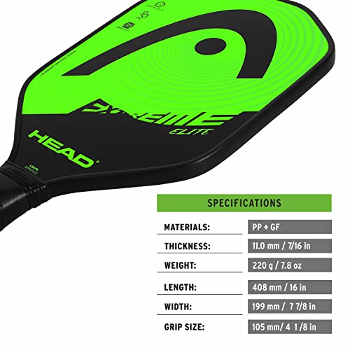 The Extreme Elite features HEAD’s Diamond shape for more control and an OTC honeycomb polymer core that creates the perfect feel and sound for all levels of play. Its smooth fiberglass surface and Ergo grip give you the power and playability you are looking for when you step on the court.