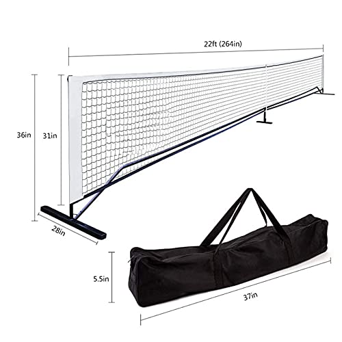 JFF Regulation Size Pickleball Net for Outdoor and Indoor – Portable 22 Feet Long Net with Steel Frame and PE Netting – Carry Bag Included