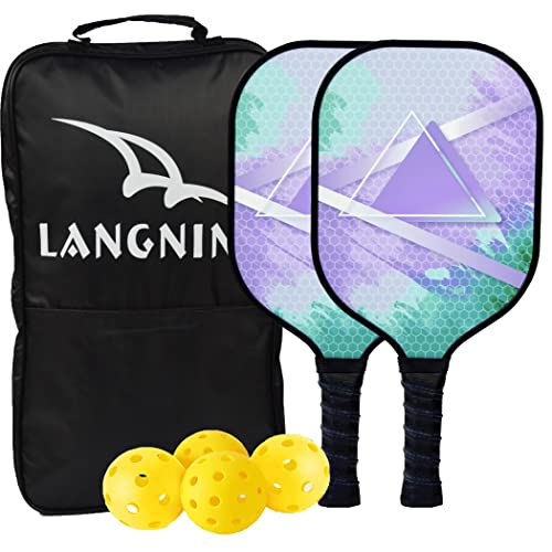 LANGNING Pickleball Paddles Set of 2, Graphite and Fiberglass Surface Pickleball Set,4 Balls, Pickleball Bag, Lightweight Pickleball Paddle Gifts for Men Women