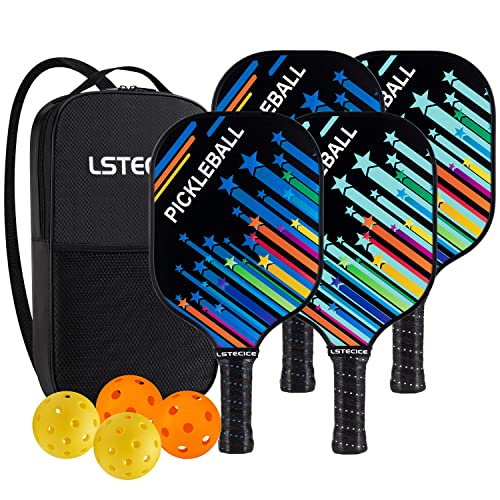 LSTECICE Pickleball Paddles Set of 4, USAPA Standard Fiberglass Pickleball Set, Lightweight Pickleball Rackets 4 Pack with 4 Outdoor/Indoor Balls, 1 Portable Carry Bag, Gifts for Men Women