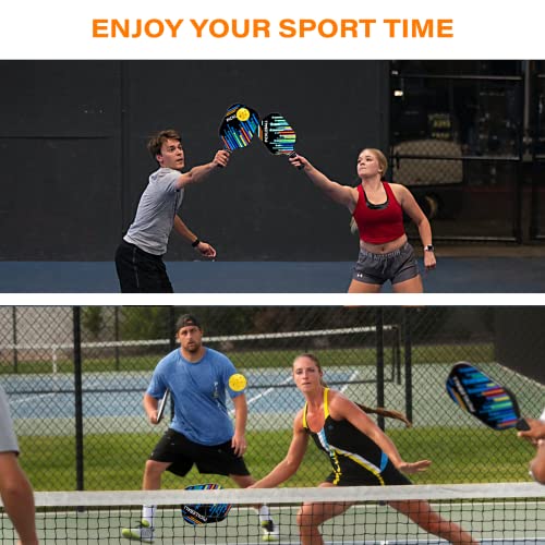 【Enjoy the Game with Family and Friends】Great value pickle ball raquette set of 4 is ideal for schools, community centers, sports clubs, and a perfect gift. Pickleball games are great fun and healthy for spending time with friends and family, grab our pickle rackets and find a pickle ball court to enjoy a great game with family and friends!