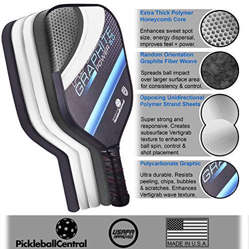 IMPROVE YOUR GAME – The Rally Power 5.0 graphite pickleball paddle features optimized power and enhanced sweet spot & spin. Improve your game instantly with a paddle that enhances your skills and have more fun playing pickleball | Made in USA | USAPA approved | 1 Year Warranty from PickleballCentral