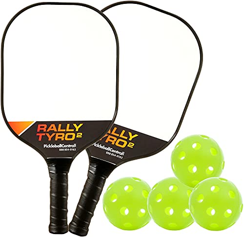 Rally Tyro 2 Pickleball 2 Player Paddle and Ball Set by PickleballCentral | Two (2) Rackets and Four (4) Balls | Advanced Composite Polypropylene Honeycomb Core and Fiberglass Face || Great Gift