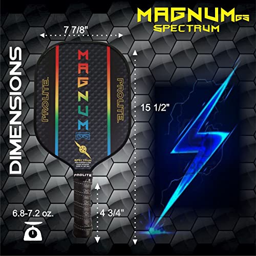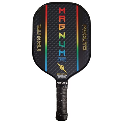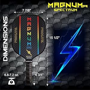 From the first second you pick up a Magnum Graphite Stealth Spectrum, you’ll get a sense of the immediate comfort once it hits your hands. The balance, grip size and dimensions fit into all hand sizes. And once you swing it, you’ll experience power with great finesse for soft net play. This one is special, with qualities that have led it to be among the winningest paddles in the world. The Magnum Graphite Stealth Spectrum has a lightweight, responsive graphite carbon fiber face construction along with a textured UV printed surface meant for high impact shots and ball control. It has a large centered sweet spot and longer handle perfect for the tennis to pickleball convert. It’s the most balanced paddle on the market!