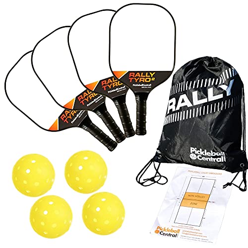 Rally Tyro 2 Composite Pickleball Paddle Set for 4 Players (4 Paddles + 4 Pickleballs + Drawstring Bag + Rules/Strategy Guide)