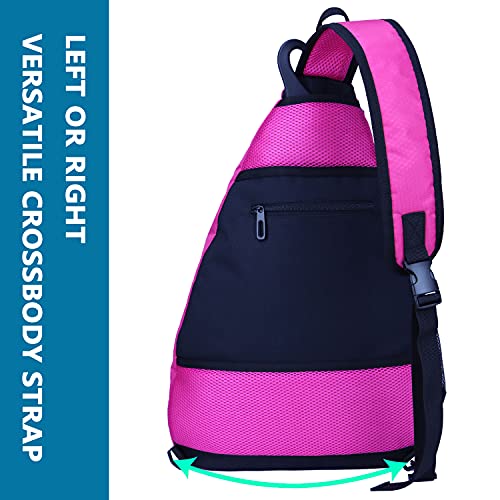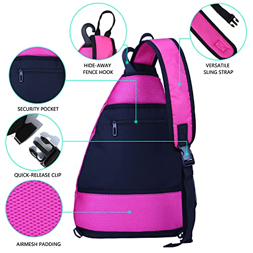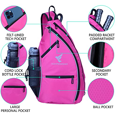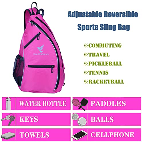 XIANFENGNIAO Pickleball Backpack Sling Bag Crossbody Backpack for Pickleball Tennis Bag Reversible Racketball Paddle Bag and Travel for Men and Women (Rose)