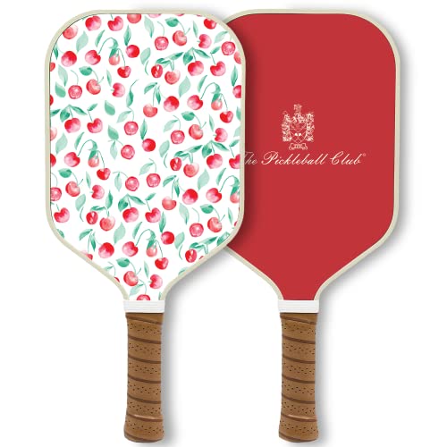 The Pickleball Club – Exclusive, Signature, One Pickleball Paddle | Fiberglass Surface with High Grit & Spin | Composite Honeycomb Core, Lightweight | Extended Handle (Red Cherries)